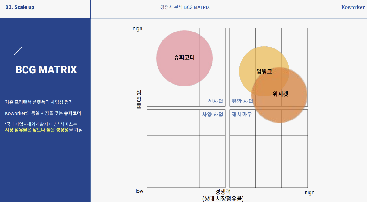 BCG 매트릭스로 구성한 시장 현황과 우리가 지향하는 비즈니스 모델에 많이 관여를 했는데 이 부분도 정확히